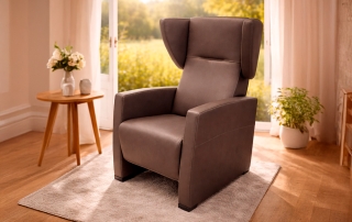 Ryglænet kan justeres via en trykknap på bagsiden, så du kan finde den mest komfortable siddestilling. Ønsker du at sidde med benene oppe, kan stolen nemt kombineres med en fodskammel eller puf.