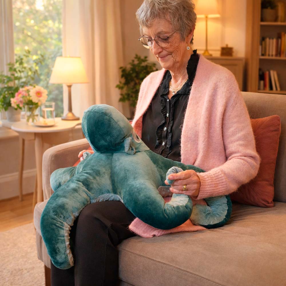 Poul er vores semi tunge tæppe og lårpude. Han kan hjælpe med at reducere uro, angst og overstimulering. Pouls ører er konstrueret på en måde, der giver taktile stimuli, når man sidder og nulrer dem. Ligesom selve hovedet er dejligt blødt, og tentaklerne har en boblende underflade, som en form for sugekopper med en granulat-pose for enden af hver tentakkel. Disse kan give stimulering for eventuelle nysgerrige eller urolige fingre, og så kan man holde ham i “hånden” fordi tentaklerne snoer sig om hånden.