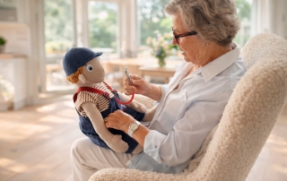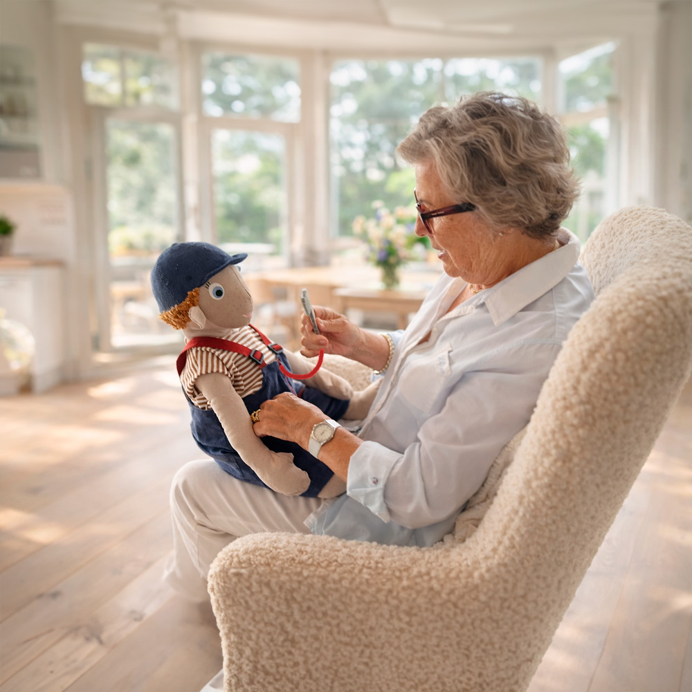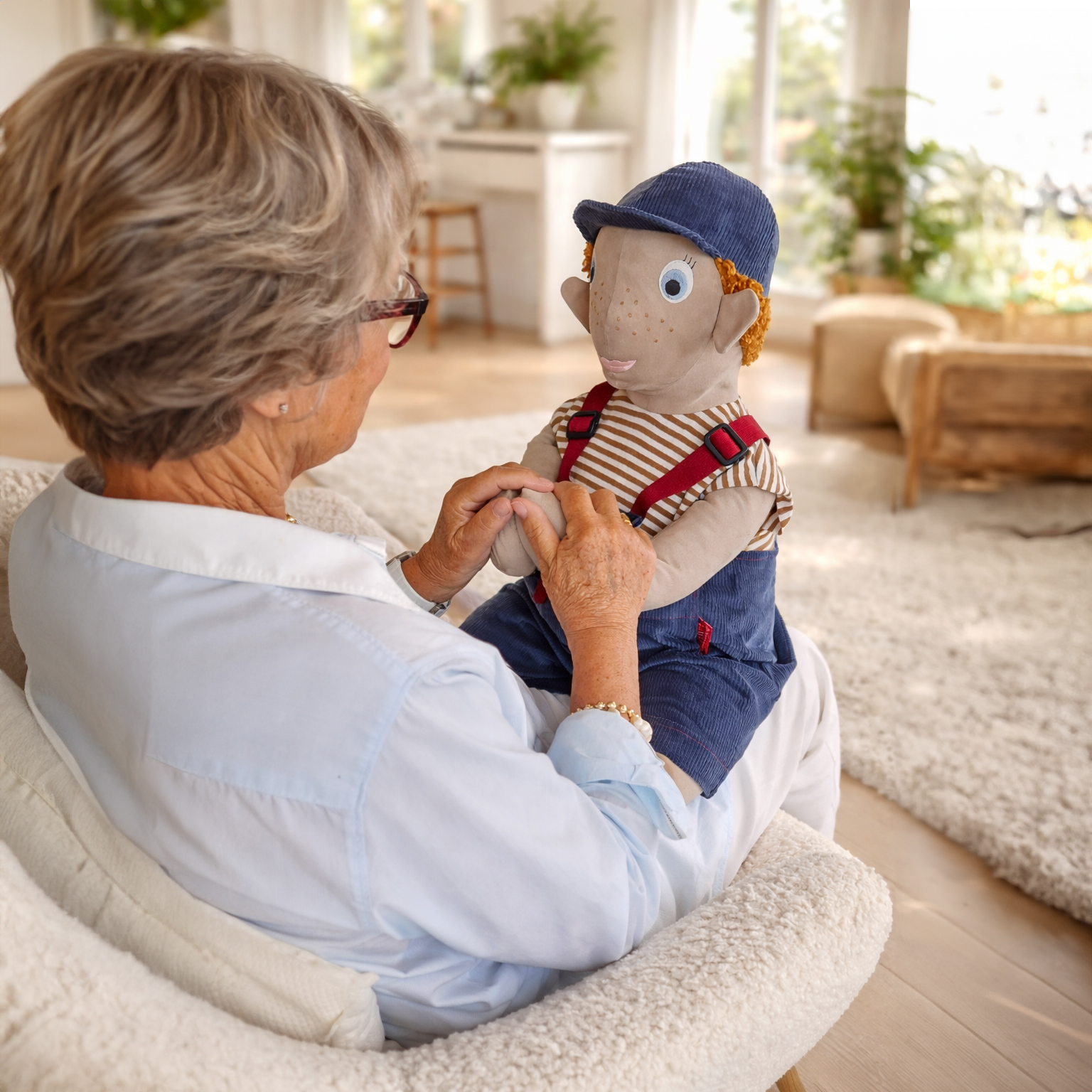 Henric, el pequeño carpintero, es una muñeca de actividad y demencia diseñada para ayudar a las personas que sienten inquietud y buscan consuelo en la compañía. Henric puede utilizarse en situaciones en las que la falta de contacto físico y la soledad se hacen presentes.
