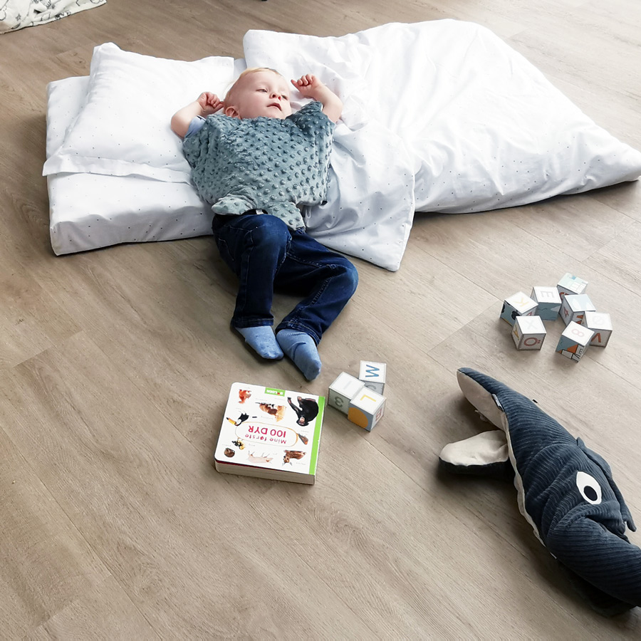 Har du et barn som bare slet ikke vil falde til ro ved puttetid? Vores Manta tilbyder den perfekte løsning for dem, der søger roen til deres barn. Manta er skabt til at berolige og give en følelse af nærhed. Vores innovative vægttæppe lægges over barnet, vingerne fra Manta omslutter kroppen for at skabe en dyb følelse af tryghed. Det bløde og lækre materiale er behageligt at røre ved og stimulerer den taktile sans for ekstra komfort.